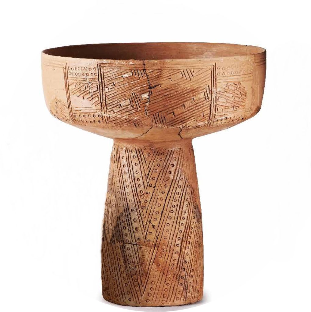A késő neolitikum kerámiáját a bekarcolt vagy festett motívumkincs gazdagsága jellemzi. Ebben az időszakban váltak általánossá az úgynevezett csőtalpas edények, illetve a bekarcolt emberi arccal díszített arcos edények.